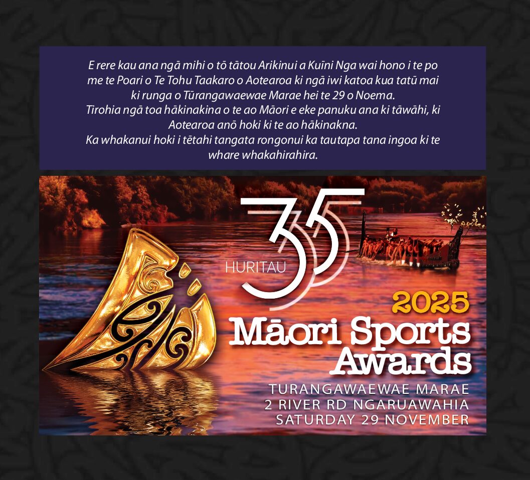 29 November 2025 @ Turangawaewae Marae, Ngaruawahia. https://maorisportsawards.co.nz/